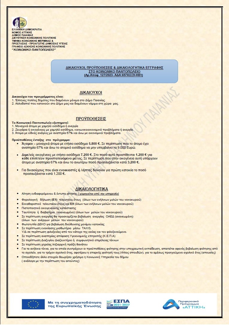 ΔΙΚΑΙΟΛΟΓΗΤΙΚΑ ΕΓΓΡΑΦΗΣ ΚΟΙΝΩΝΙΚΟΥ ΠΑΝΤΟΠΩΛΕΙΟΥ